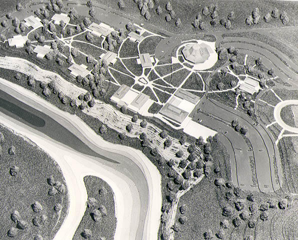 A model showing the original design concept for what is now named the Danny Lang Teaching, Learning & Event Center. Footage was taken from “Southern Oregon Wine Institute: a catalyst for economic development,” an informational video detailing the early inception of UCC’s viticulture and enology program.