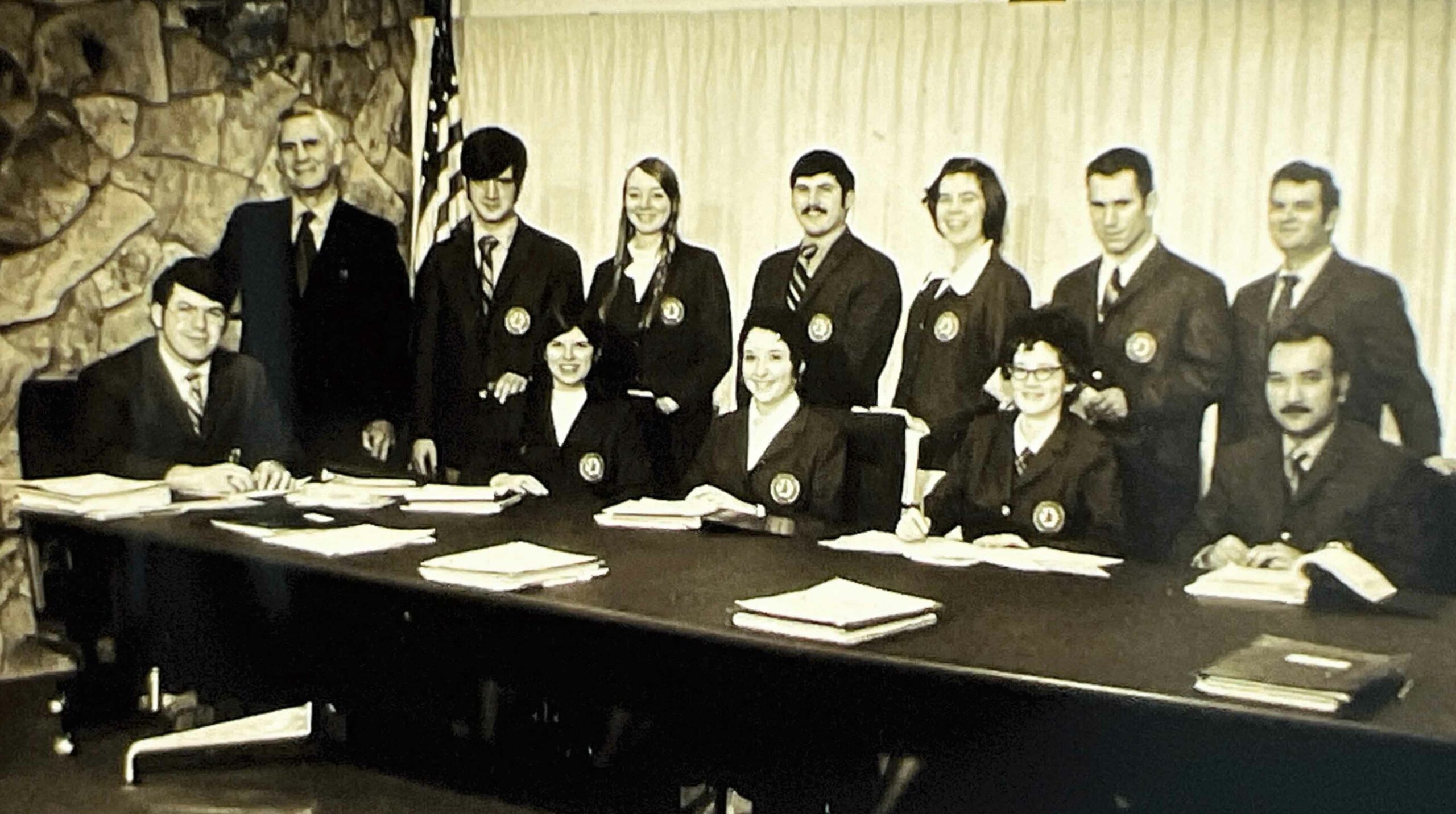 Associated Student Body (ASUCC) Officers 1970-1971 Standing: UCC President Harry Jacoby, Jim Babe, Shirley Hughes, Steve Whetherell, Linda Deardorff, Olan Hatcher, Director of Student Services Jim West Seated: ASB President Mike Whetherell, Peggy Hopkins, Donna Nerell, Mickey Grimes, Ricardo Navarro