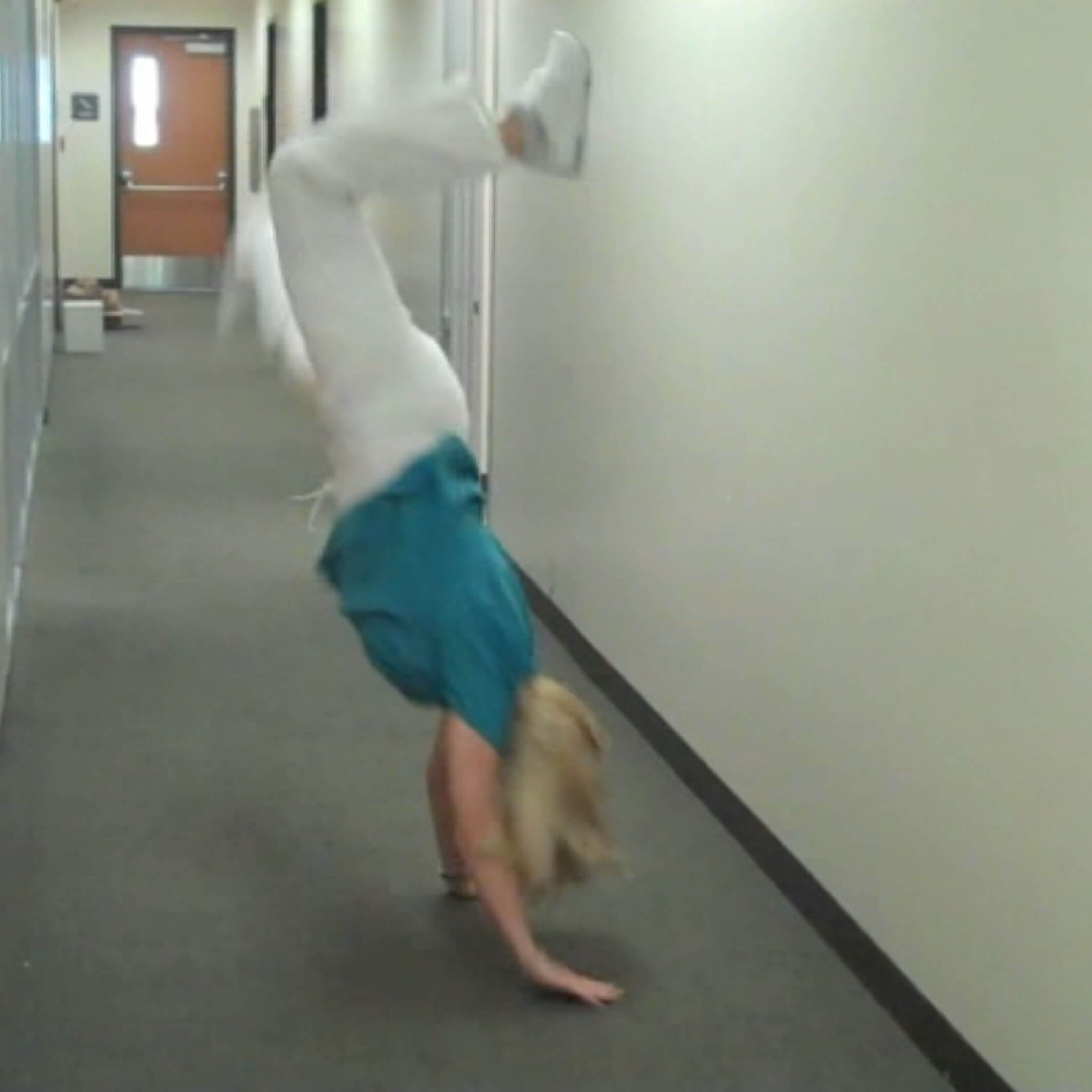 Thomas Humbert does a cartwheel during his audition to become UCC’s first costumed Riverhawk Mascot. The audition was held January 13, 2011. See the video story by The Mainstream here: Quest for the Riverhawk