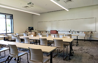 Features: Internet, computer, projector, whiteboard, tables on wheels, window shades