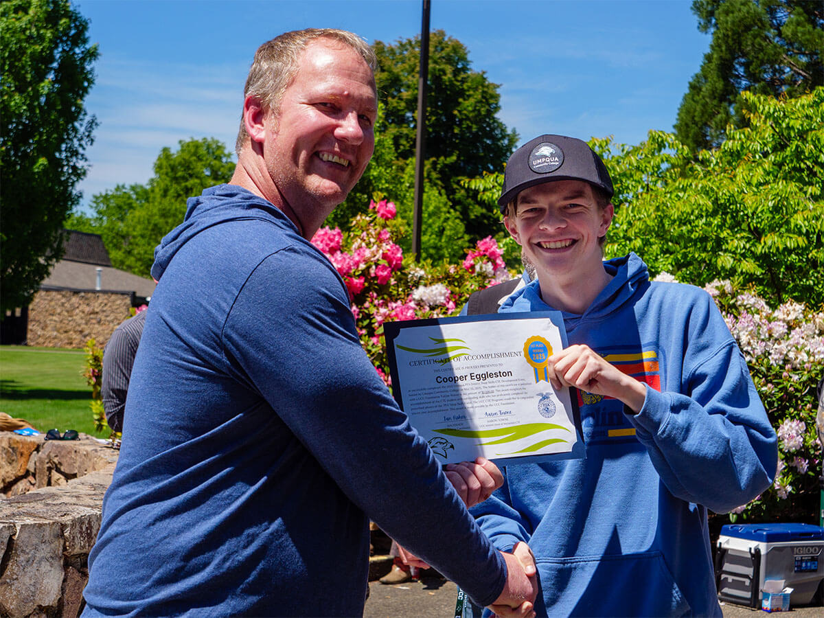 Roseburg, Ore., May 21, 2025—The annual FFA Shop Skills Competition brought students from Glide, Roseburg, Sutherlin, Oakland, South Umpqua, Elkton, Days Creek, and Douglas high schools to UCC. Students competed for scholarships and prizes. The day included skills in welding, woodworking, electrician, tool identification, surveying, and schematics drawing.