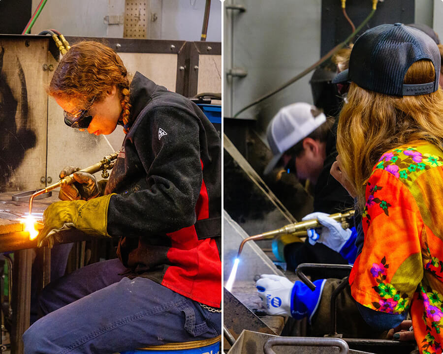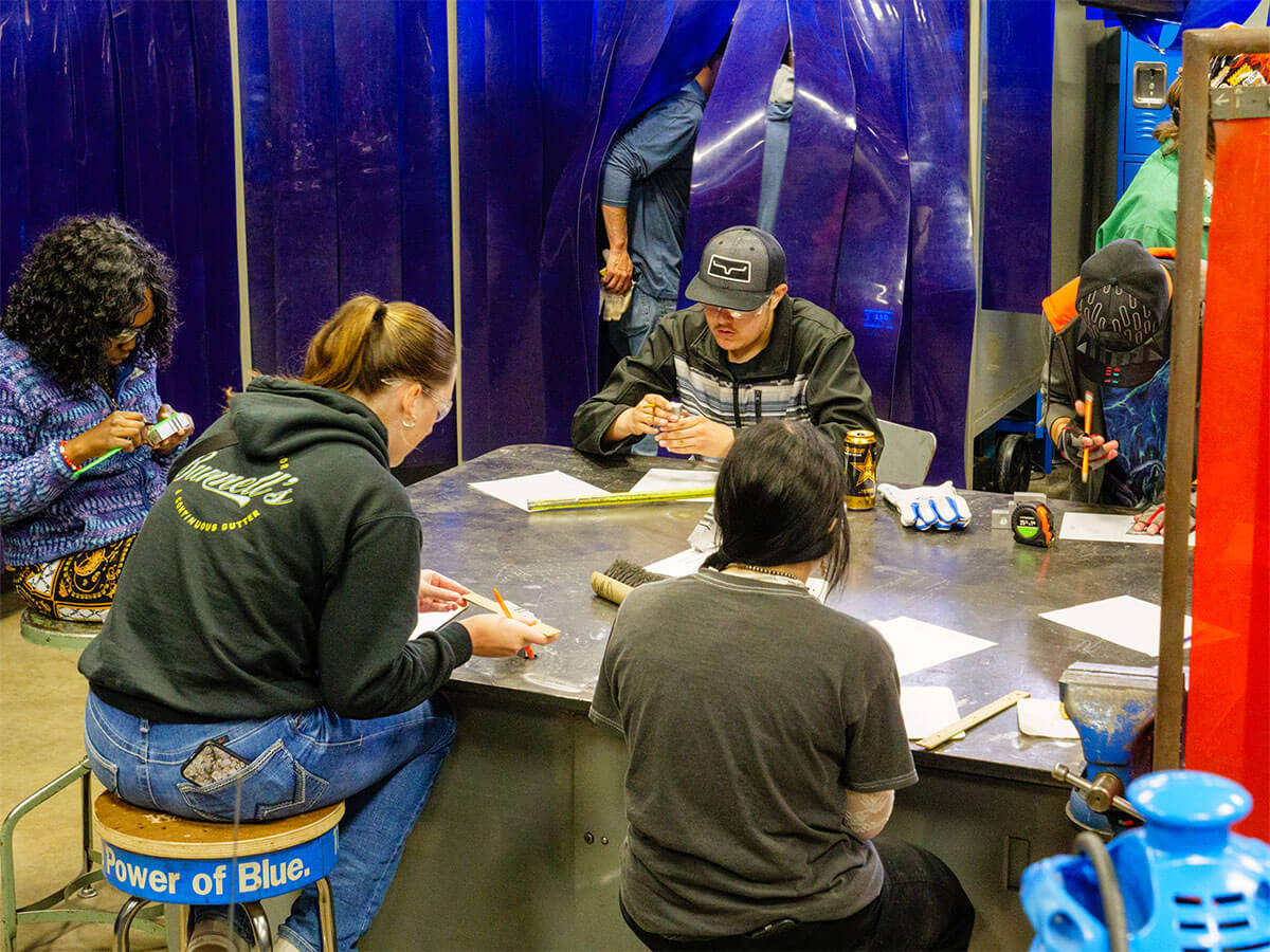 A group of UCC welding students mentored local area high school students on welding skills throughout the day. Some UCC student mentors are not only on track to graduate with UCC degrees and certificates in welding but are also already employed at local companies such as Bettendorf, Whit-log Trailers, Convey, and 7robotics.
